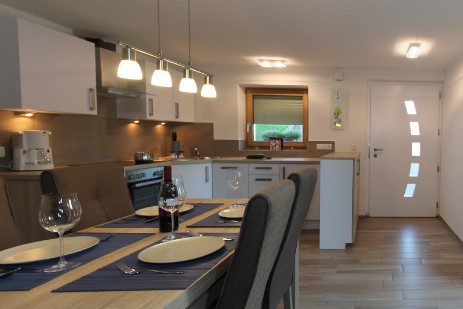 Spülmaschine, Kaffeemaschine, Wasserkocher, Toaster, ausreichend Geschirr und Töpfe; gemütliches Schlafsofa, Sat TV, Stereoanlage