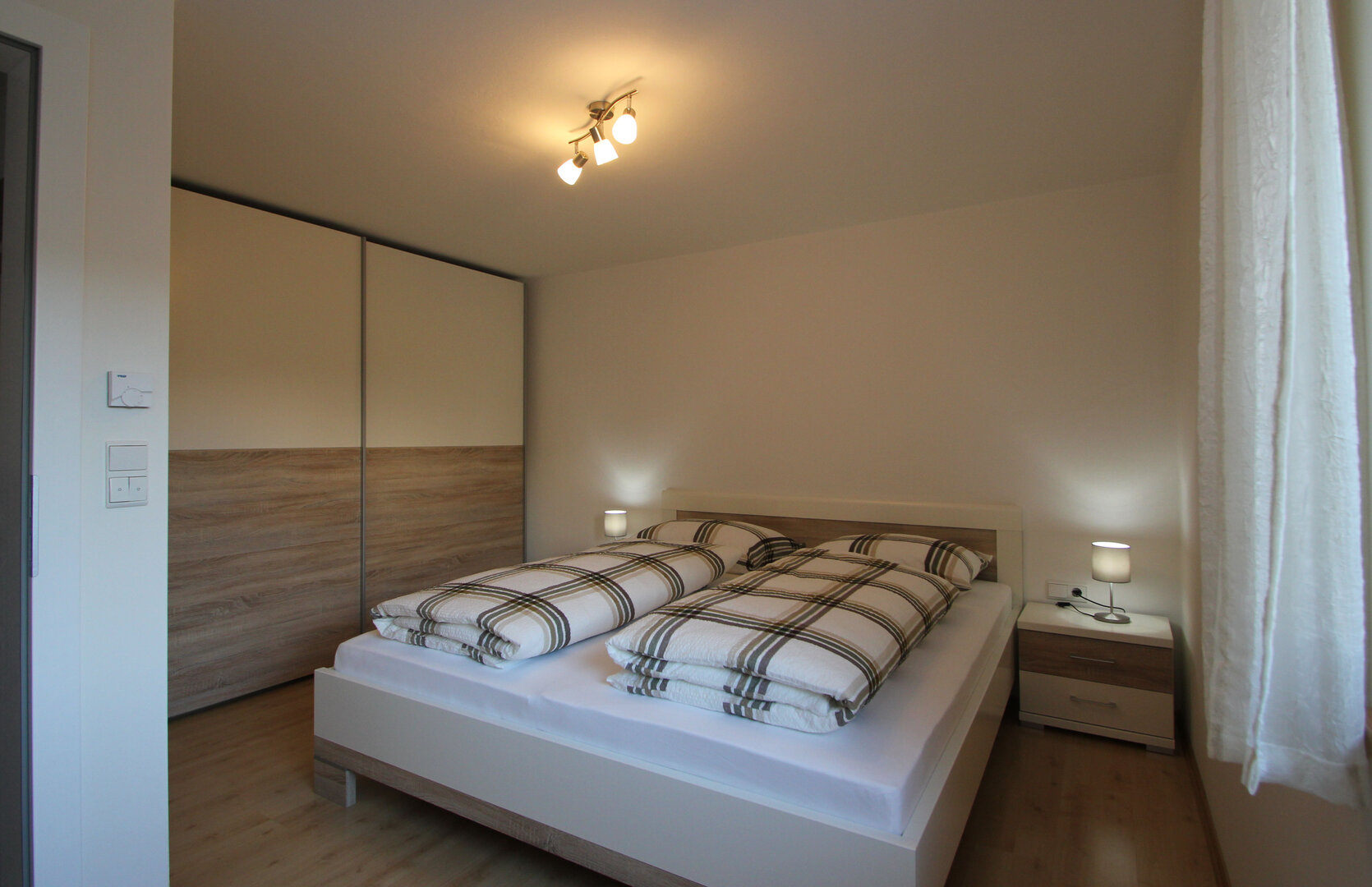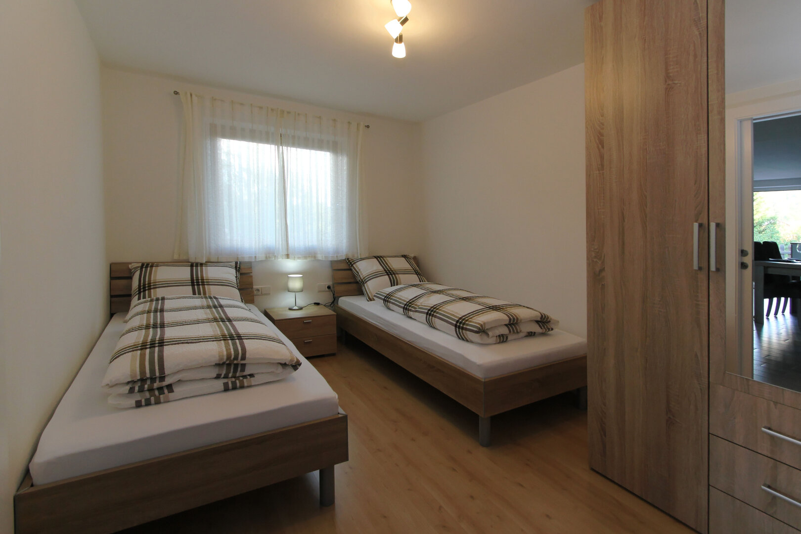 Ein Doppelzimmer mit großem Kleiderschrank & Safe und ein Zweibettzimmer mit großzügigem Kleiderschrank